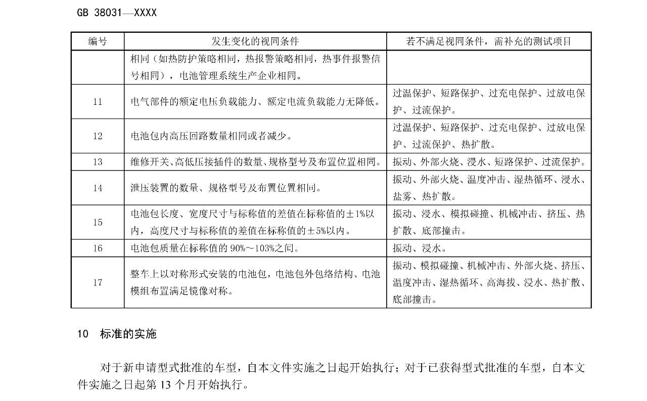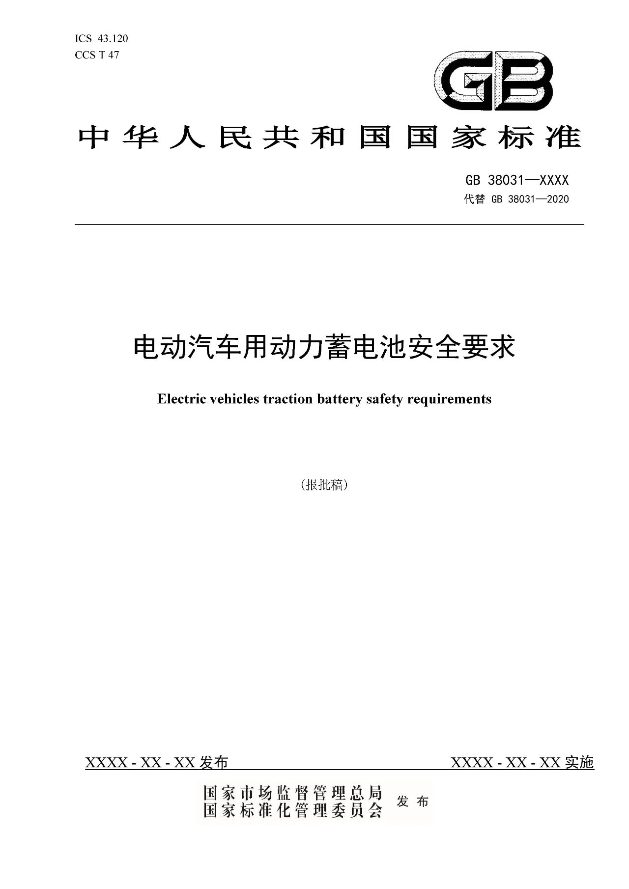 新版標(biāo)準(zhǔn)將代替GB 38031—2020《電動(dòng)汽車用動(dòng)力蓄電池安全要求》。