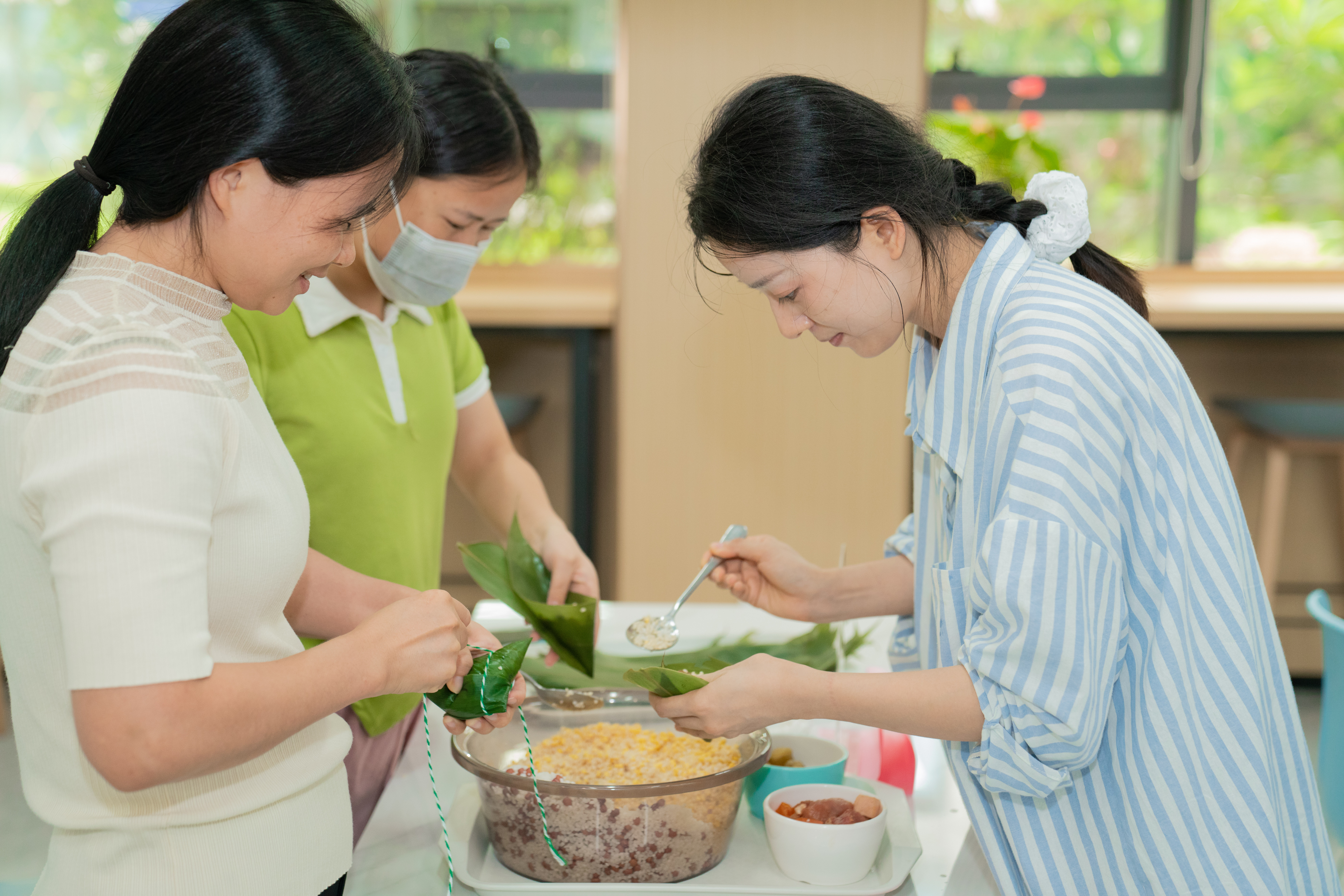 用粽葉包裹粽餡和關(guān)懷