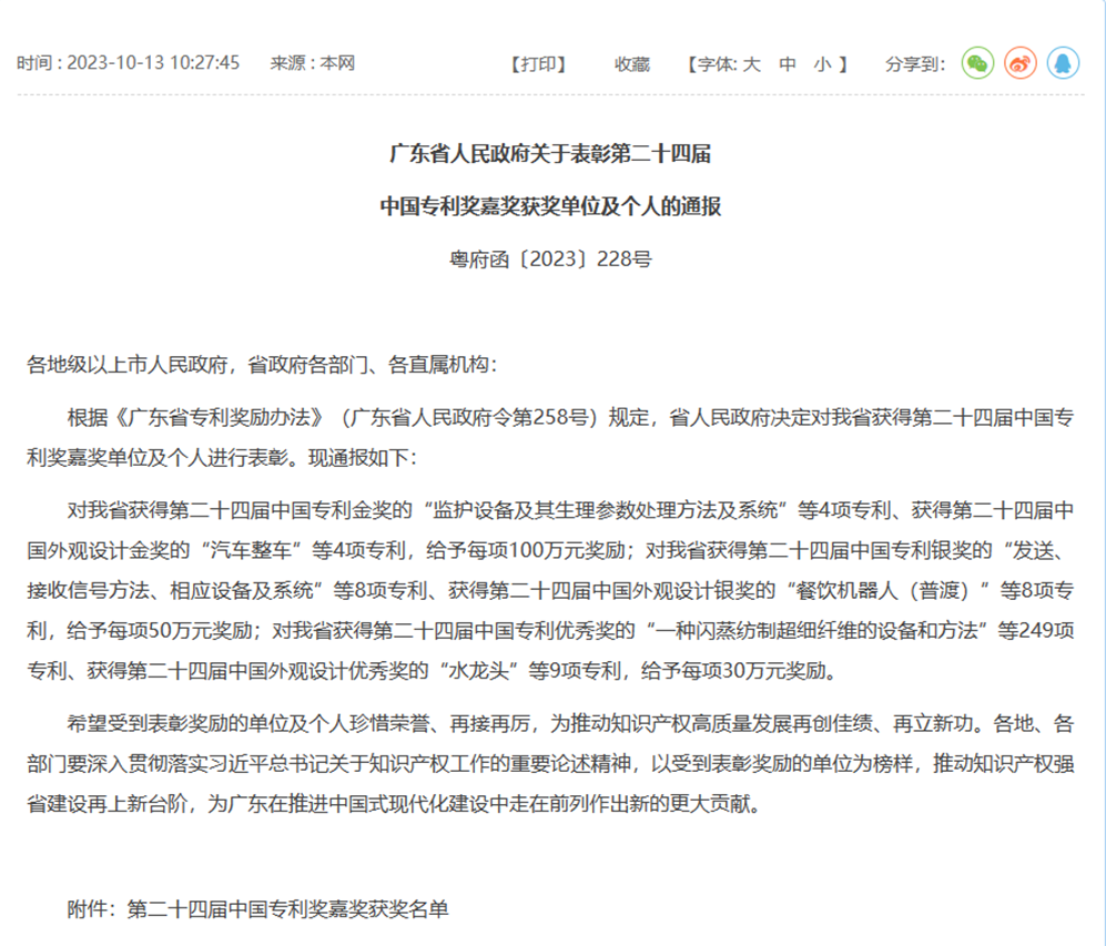 中國專利獎由國家知識產(chǎn)權(quán)局與世界知識產(chǎn)權(quán)組織聯(lián)合設(shè)立,是含金量最高的知識產(chǎn)權(quán)部門獎項,也是國內(nèi)知識產(chǎn)權(quán)界的最高榮譽(yù)。自1989年起至今已成功舉辦二十四屆。