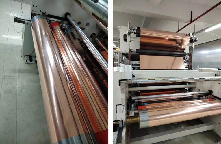 明毅電子生產的一步式全濕法復合銅箔電鍍設備和兩步法復合銅箔水電鍍設備,兩種設備均采用了先進的導電輥技術和滾輪傳動方式,以提高生產效率和產品質量。其中,“一步法”設備具有無需磁控濺射設備的工藝優(yōu)勢,以及提高產品利用率等特點。