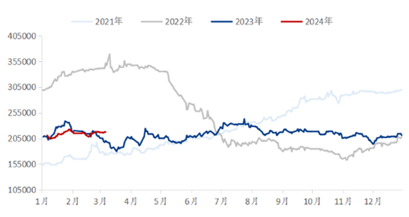 國(guó)內(nèi)錫錠價(jià)格走勢(shì)情況(單位:元/噸)