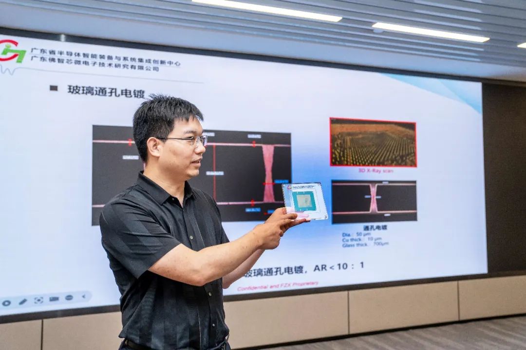 佛智芯是廣東省半導體智能裝備和系統(tǒng)集成創(chuàng)新中心的承載單位,專注于板級扇出封裝和玻璃芯板制造,已掌握玻璃微孔加工技術(shù),實現(xiàn)孔型、孔徑、錐度可控加工;在玻璃表面金屬化方面,實現(xiàn)低溫、低粗糙度、高結(jié)合力芯板制造,銅與玻璃的結(jié)合力15N/cm以上,技術(shù)能力達到國際先進水平,解決了高密度封裝基板制造的關(guān)鍵問題。