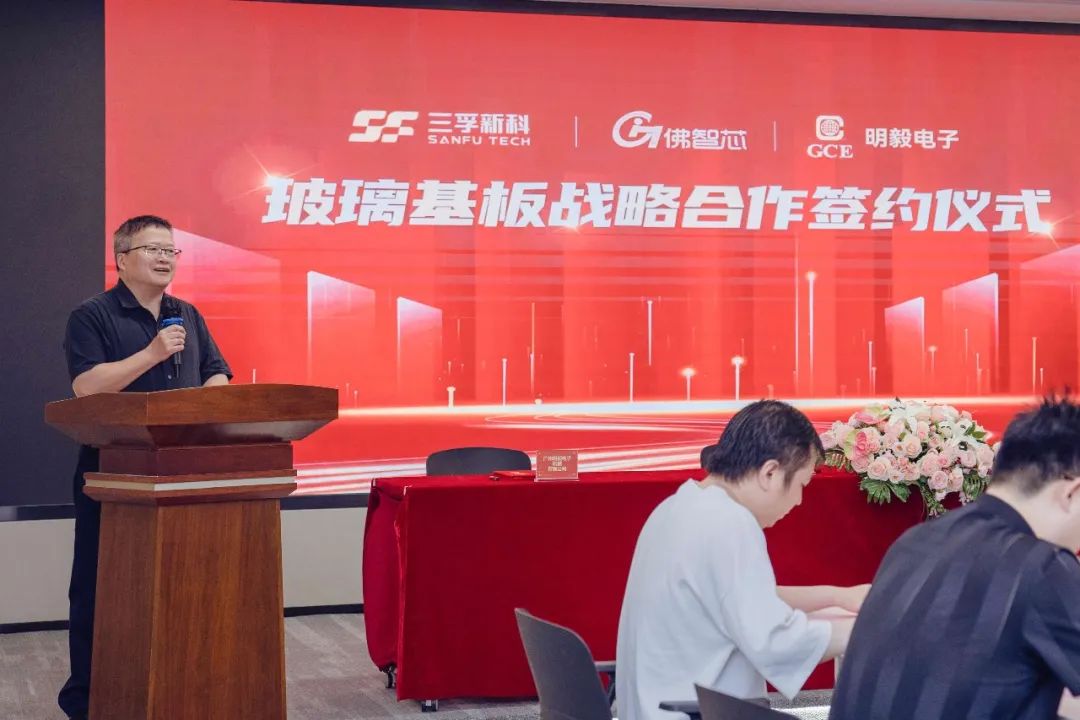 三孚研究院朱平博士主持了本次簽約儀式,他提到:“三孚新科近年來在電子相關(guān)行業(yè)的業(yè)務(wù)份額高速增長,特別是PCB制造領(lǐng)域基本完成了如PCB專用銅箔制造、蝕刻、水平沉銅、脈沖/填孔電鍍、化學鎳金等核心制程專用化學品及專用設(shè)備的覆蓋。這為公司切換到玻璃基板表面處理賽道提供了技術(shù)基礎(chǔ),期待我們的脈沖、填孔電鍍專用化學品及半導體電鍍專用設(shè)備通過與佛智芯玻璃封裝工藝的融合,在玻璃基板表面處理領(lǐng)域?qū)崿F(xiàn)量產(chǎn)應(yīng)用!