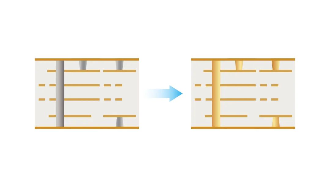 這其中,高階HDI需求尤為明顯——HDI(高密度互連)技術(shù)的引入進(jìn)一步縮小了PCB布線空間和元件間距,大幅提升了服務(wù)器的集成度和性能,成為了AI服務(wù)器迅猛發(fā)展的核心助力。高階HDI板與高多層板作為AI服務(wù)器的重要組成部分,要實(shí)現(xiàn)電氣的互聯(lián)互通,其制造過(guò)程中的孔金屬化工藝尤為關(guān)鍵,而水平沉銅則是當(dāng)前最佳的孔金屬化工藝之一。其主要作用是將鉆孔孔壁金屬化。通過(guò)在絕緣的孔壁上用化學(xué)的方法沉積一層薄薄的化學(xué)銅層,以作為后面電鍍銅的基底導(dǎo)電層,從而實(shí)現(xiàn)PCB各層間電氣互聯(lián)。