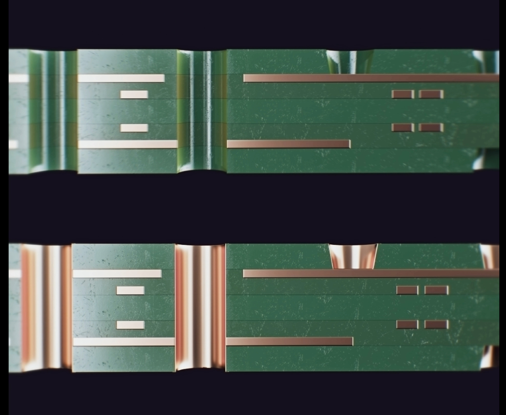 皓悅新材水平沉銅工藝 沉銅前(上)沉銅后(下)