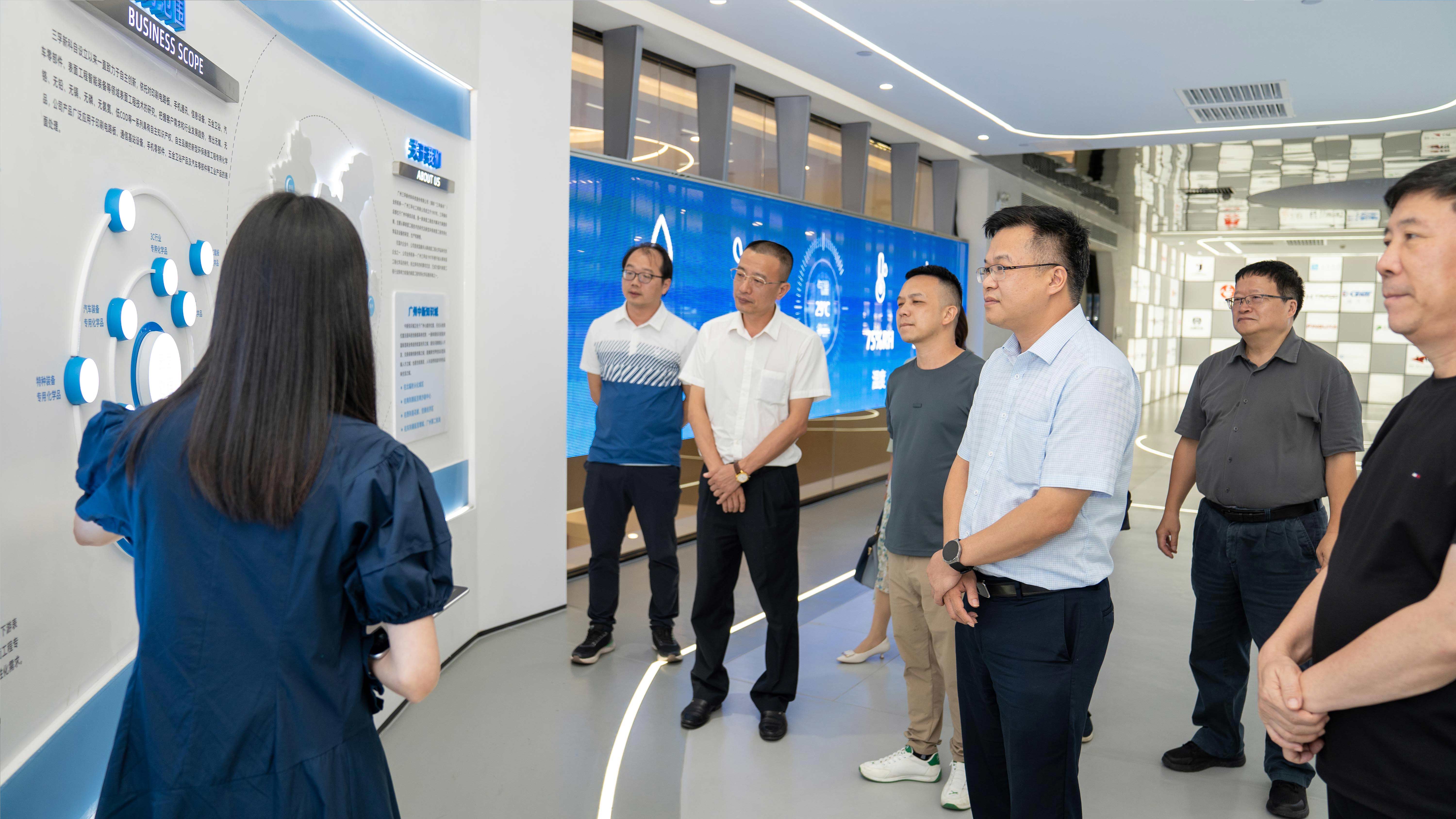 在調(diào)研設(shè)備車(chē)間后,嘉元科技團(tuán)隊(duì)來(lái)到三孚新科總部參觀三孚數(shù)字展廳,雙方就各自目前的研發(fā)方向及動(dòng)力電池、儲(chǔ)能電池、復(fù)合銅箔制備等技術(shù)的未來(lái)發(fā)展趨勢(shì)進(jìn)行了深入的溝通交流。此外,嘉元科技還與二輕所團(tuán)隊(duì)就銅箔制備過(guò)程中所需應(yīng)用的不溶性陽(yáng)極技術(shù)進(jìn)行了探討。